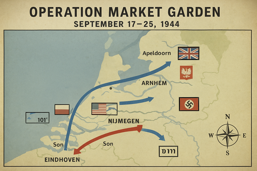 Operation Market Garden was one of the most ambitious Allied offensives of World War II. Conceived by British Field Marshal Bernard Montgomery, it was intended to bring the war in Europe to a swift conclusion by outflanking the German Siegfried Line, crossing the Rhine River, and driving deep into the industrial heartland of Germany—the Ruhr. The operation took place in the Netherlands between September 17 and 25, 1944, and represented the largest airborne assault in history up to that time.